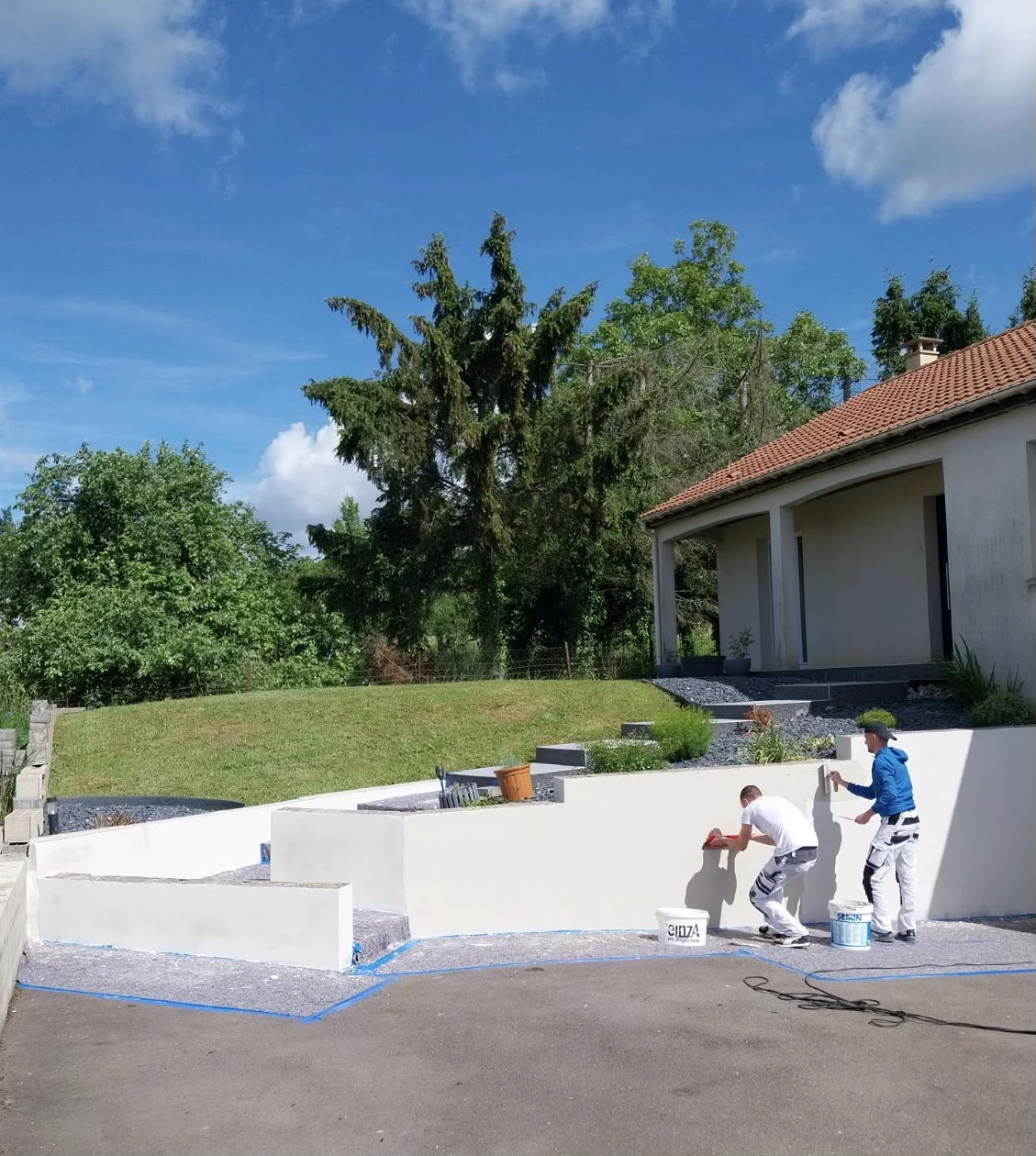 Nous appliquons avec soin les peintures ou enduits sélectionnés pour obtenir un rendu qui résiste aux années et sublime votre maison.